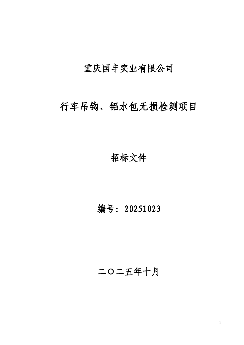 重庆国丰实业有限公司行车吊钩、铝水包探伤检测项目招标
