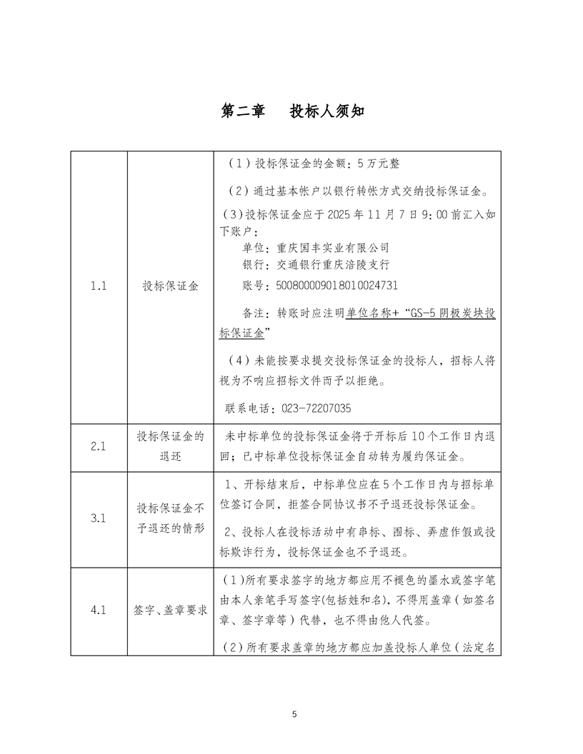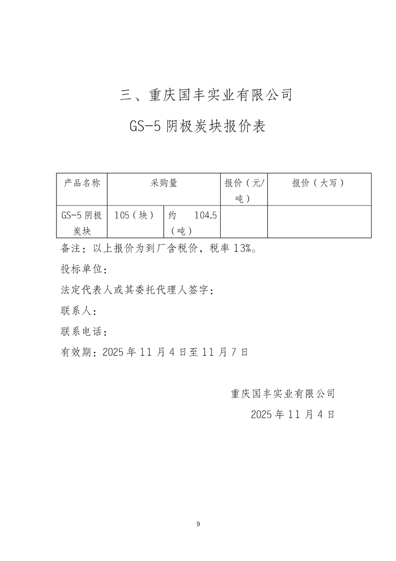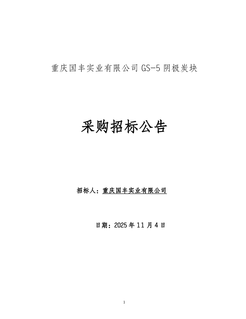 重庆国丰实业有限公司GS-5阴极炭块采购招标公告