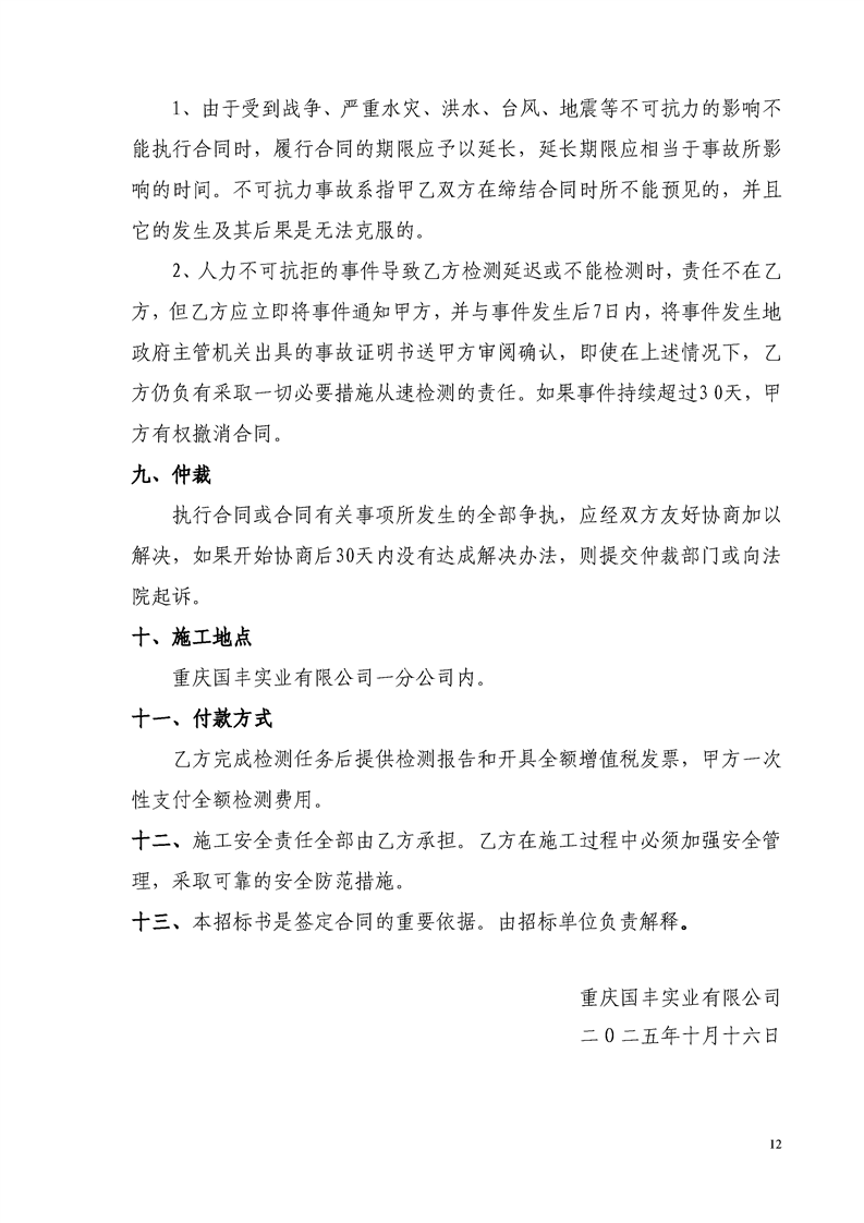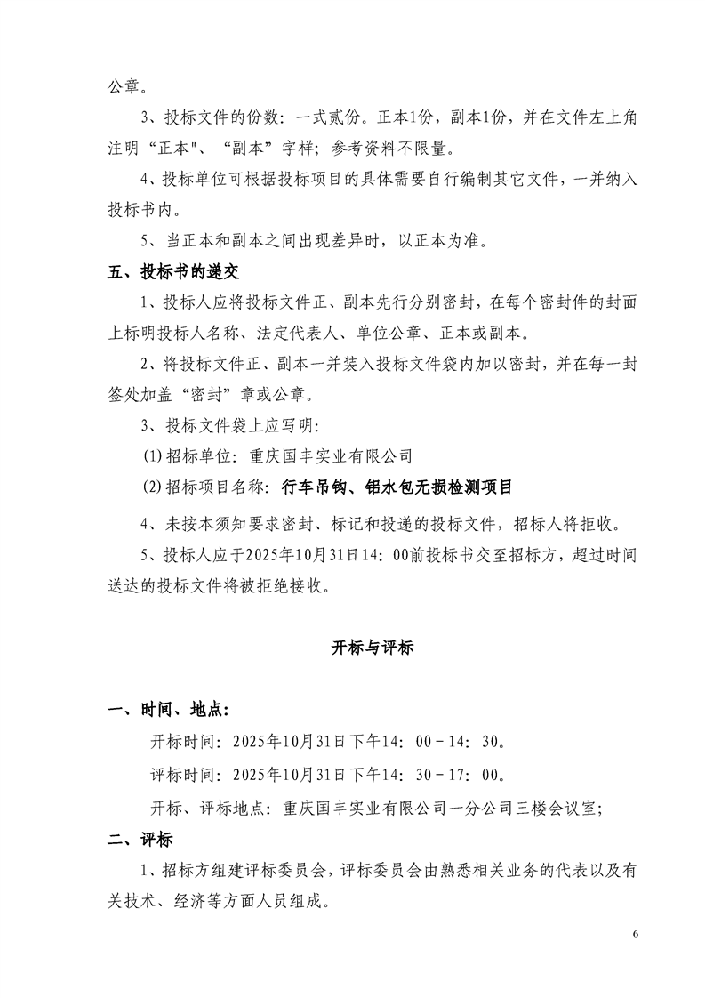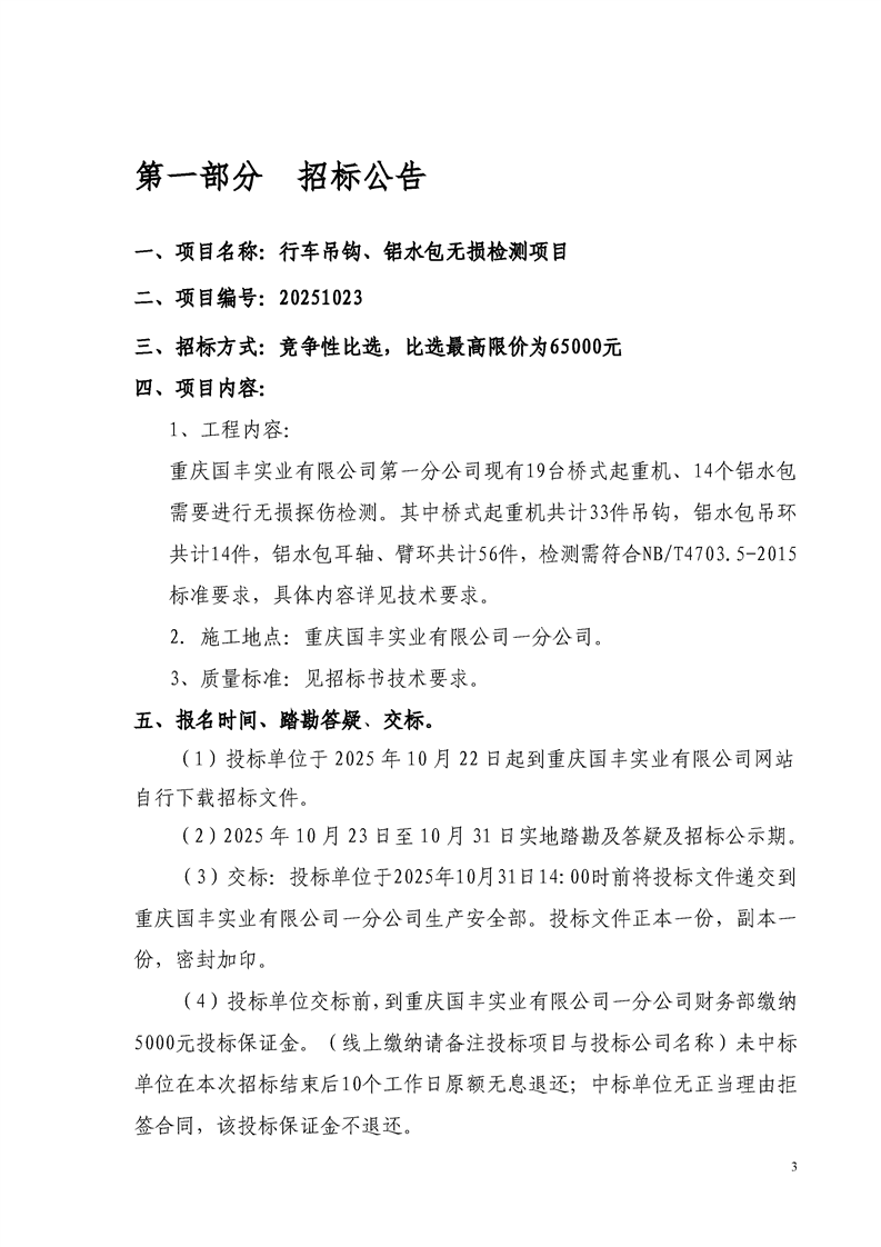 重庆国丰实业有限公司行车吊钩、铝水包探伤检测项目招标