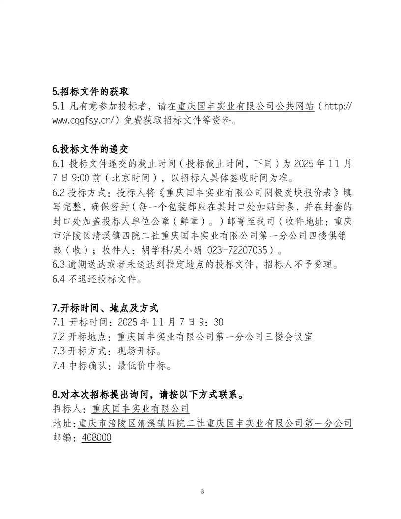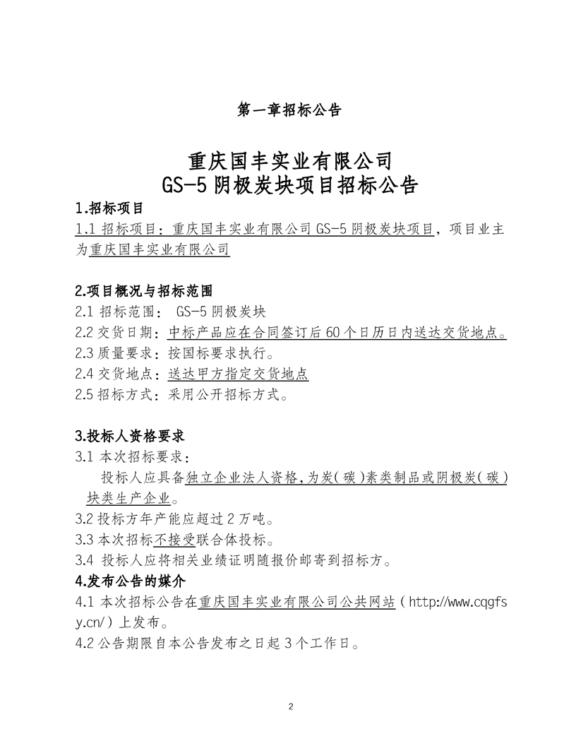 重庆国丰实业有限公司GS-5阴极炭块采购招标公告